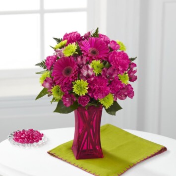 The FTD Spring Garden Bouquet blooms in soft and lovely seasonal color to make a glorious Mother’s Day treat that will thrill mom on her big day. Soft yellow roses, pink mini carnations and bright pink Peruvian Lilies are accented with lush greens to create a refreshing flower arrangement in a heavy, crystal clear glass vase sparkling with a contemporary cut glass design. Limited Availability Due to limited varieties and quantities available at this time, this arrangement may be designed with thoughtful substitutions without prior notification.